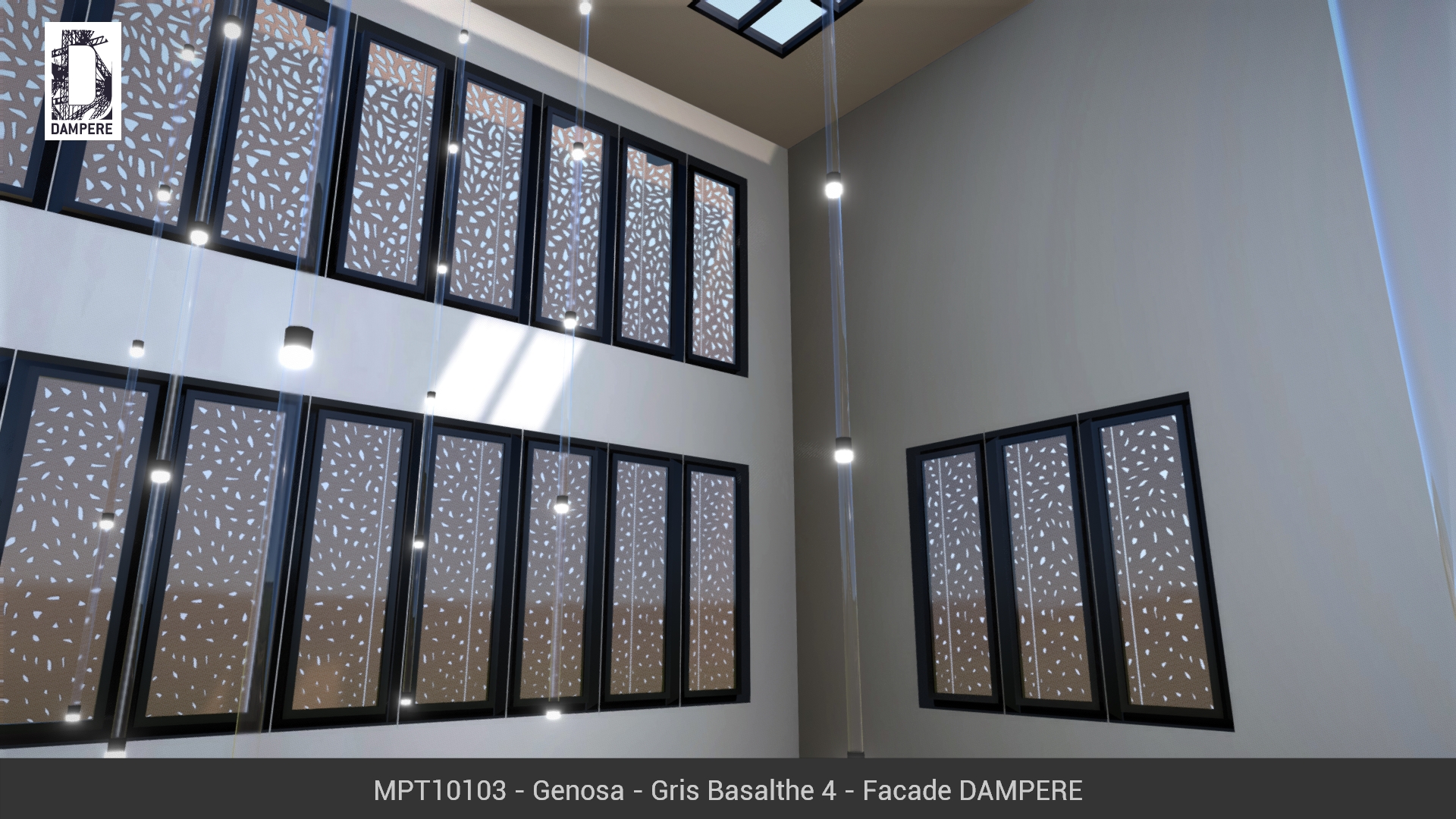 La façade en découpe laser GENOSA s’utilise dans tous type de projet tertiaire. La transition peut s’opérer en sens inverse pour plus de lumière en partie basse. Le choix des couleurs est un paramètre sensible pour obtenir le meilleur effet.