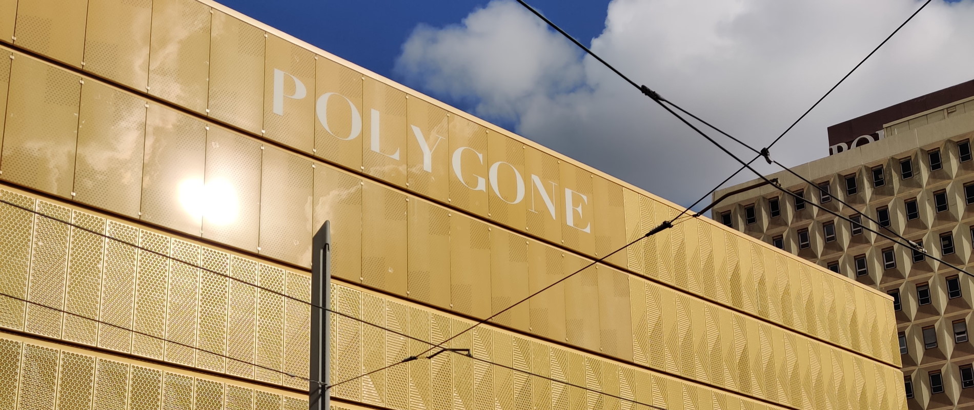 • Le nom du centre commercial #POLYGONE se trouve écrit sur le Vitrage sérigraphié